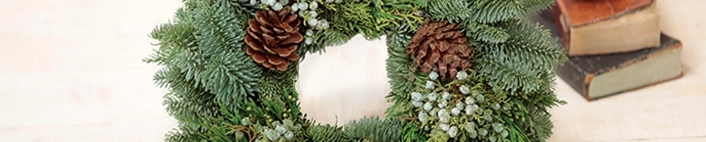 毎年ご好評いただいている、冬の定番アイテム。クリスマスを華やかに演出するリースやスワッグをご用意しました。