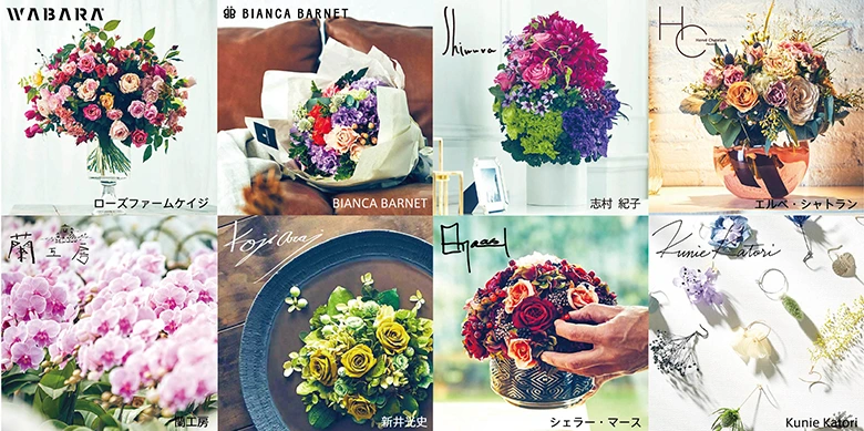 『マイセレクト』には、第一園芸の6つのブランド「ビアンカバーネット」「エルベ・シャトラン」「新井光史」「シェラー・マース」「Noriko Shimura」「Kunie Katori」に加え、こだわりの生産者「ローズファームケイジ」「蘭工房」もラインナップ。